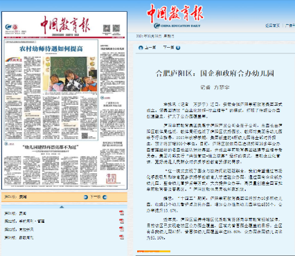 近日,《中國教育報》頭版刊登了合肥廬陽區(qū)國企和政府合辦幼兒園——安徽合肥廬陽學(xué)前教育集團(tuán)的報道。